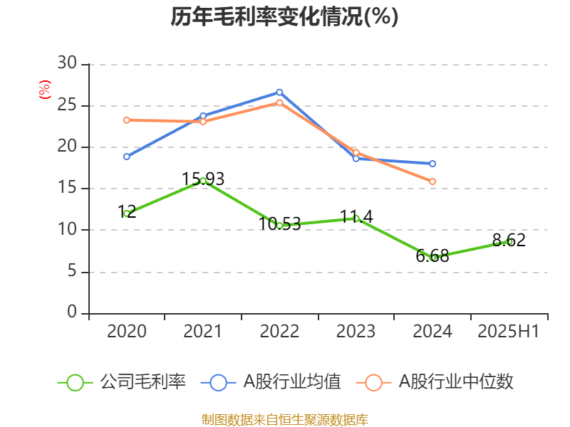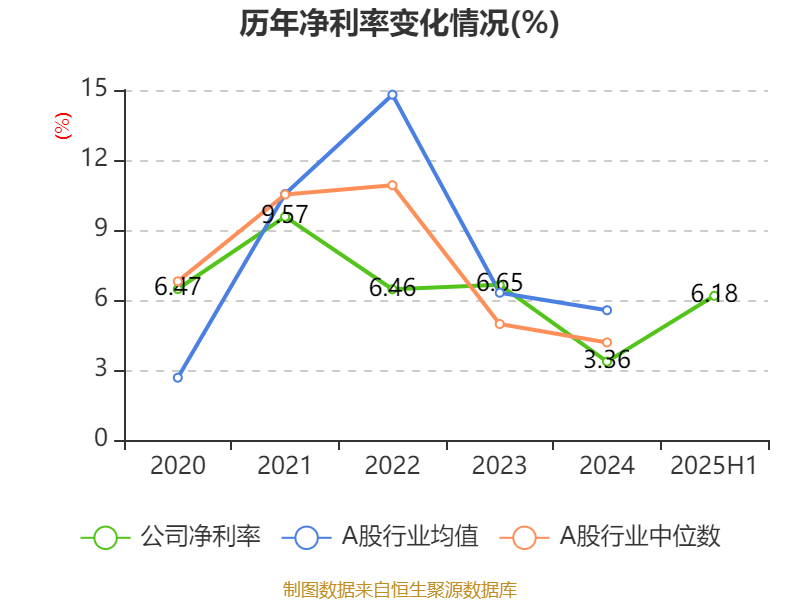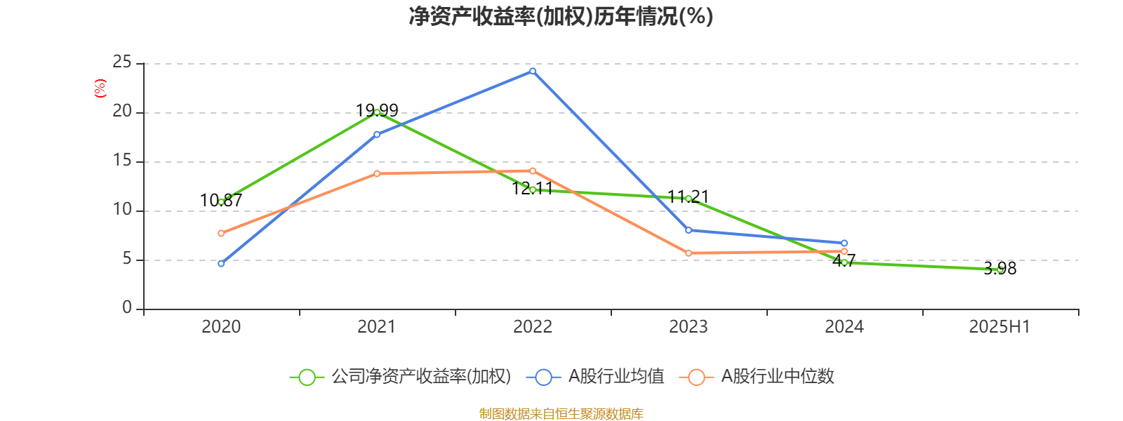 2025年上半年,公司平均净资产收益率为3.98%,较上年同期下降1.05个百分点。