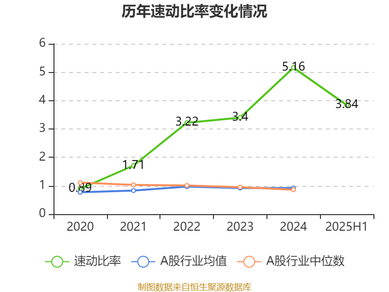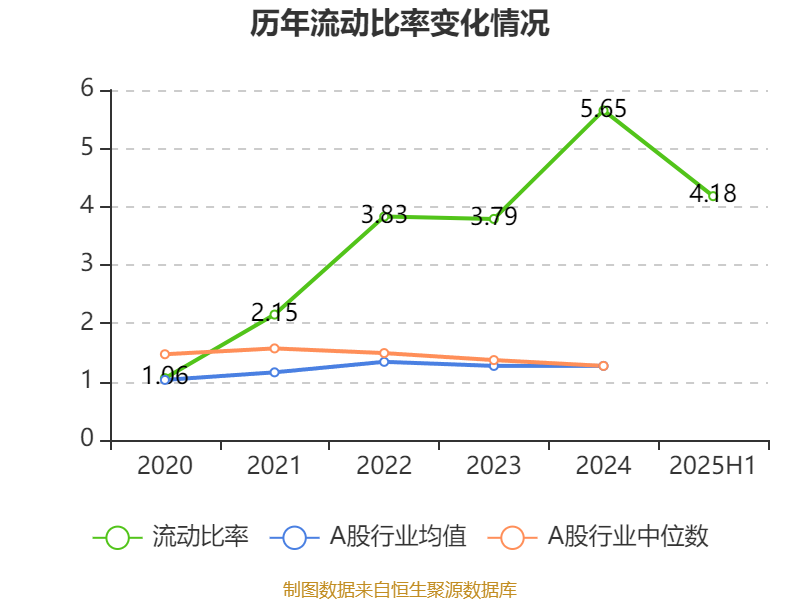 2025年上半年,公司流动比率为4.18,速动比率为3.84。