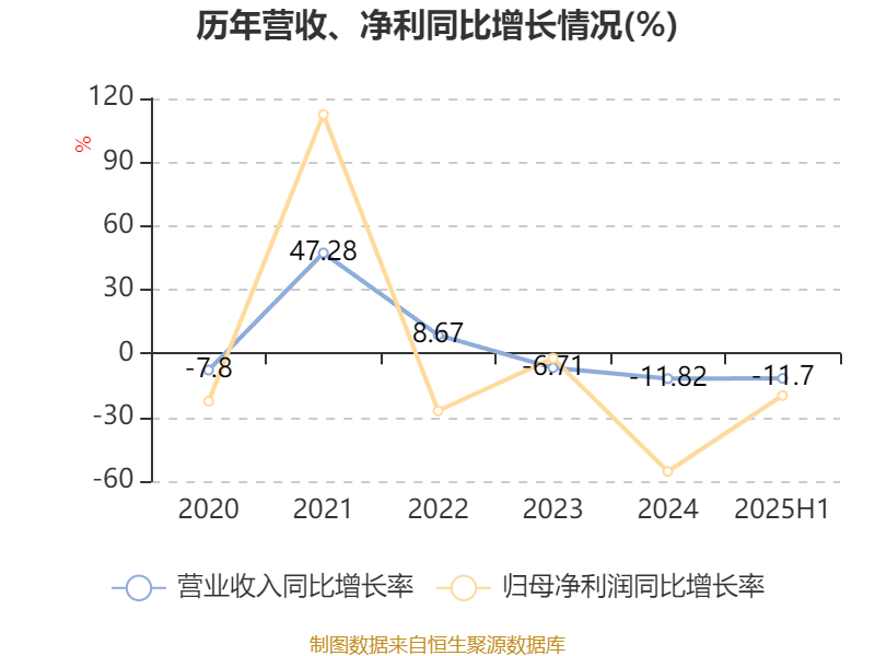 中证智能财讯东光化工(01702)9月19日披露2025年中期报告。报告期内,公司实现营业收入11.81亿元,同比下降11.7%;归母净利润7231.8万元,同比下降19.76%;据报告显示,东光化工基本每股收益为0.117元,平均净资产收益率为3.98%。
