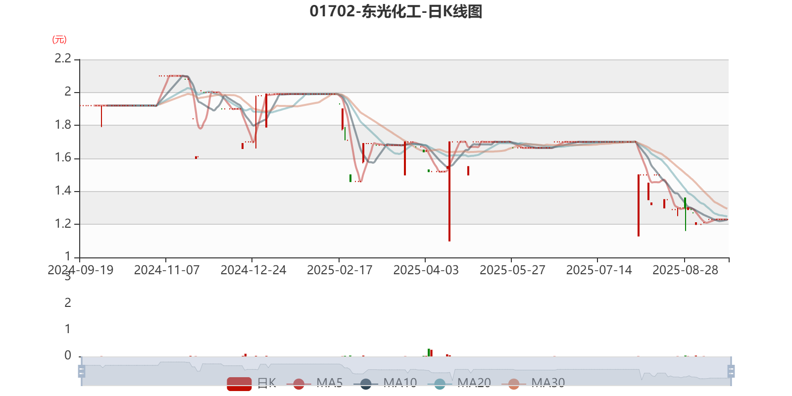 以9月19日收盘价计算,东光化工目前市盈率(TTM)约10.43倍,市净率(TTM)约0.38倍,市销率(TTM)约0.29倍。