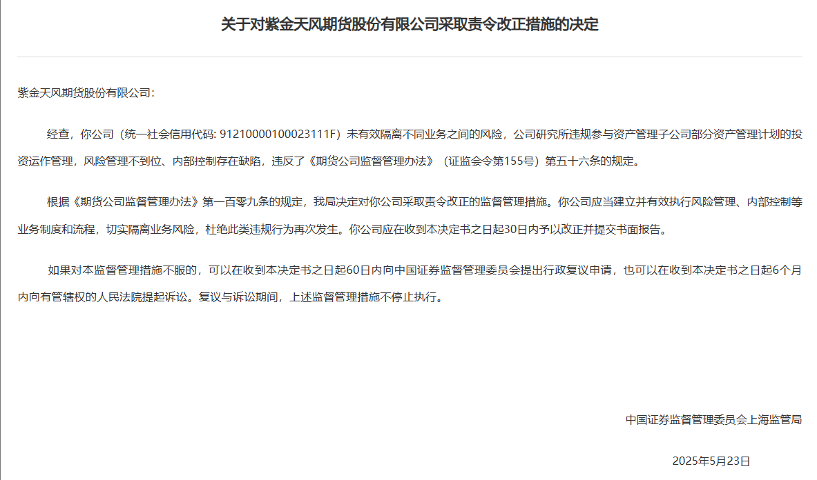 另外,记者注意到,三板挂牌公司紫金天风期货因研究所违规介入资管子公司投资运作,公司及3名高管(包括研究所所长、首席风险官、资产管理和研究所的副总经理)被出具警示函。